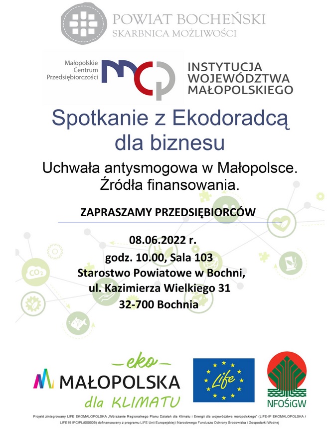 OBWIESZCZENIE Wójta Gminy Bochnia informujące o wszczęciu postępowania administracyjnego dotyczącego wydania decyzji o środowiskowych uwarunkowaniach dla przedsięwzięcia pn: „Rozbudowa drogi powiatowej nr 1444K Uszew-Nowy Wiśnicz (ul.Podzamcze, ul.Zamkowa, ul.Olchawska) – Nieznanowice…